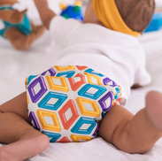 A product photography series for a cloth diaper brand that used bold retro ’90s-inspired patterns and playful styling to resonate with millennial moms. The visuals blended nostalgia with modern practicality, helping position the product as both stylish and functional for today’s parents.